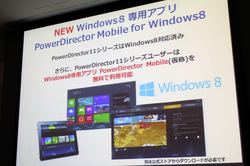 次世代OS「Windows8」に対応。さらに、Windows8専用アプリケーション「PowerDirector Mobile」も無料で利用することができる。