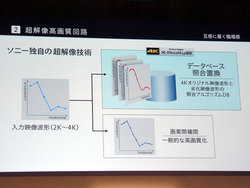 また超解像についても、独自のデータベース照合型を採用している点を改めてアピール。「我々の15年間にわたるノウハウを色々な形でこのチップのなかに凝縮している」とし、「単なるディスプレイだけでなく、ディスプレイとそれに伴う画像処理技術で、他社にない、新しいソニーの高画質の世界を作っていきたい」と言葉を続けた。