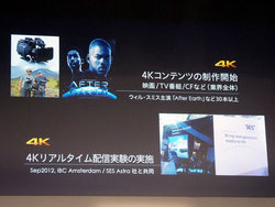 そして同社はプロ機器も取り扱っており、撮影から配信、上映までを4Kで行えるシステムを持っていることにも言及。「プロで培われた技術のエッセンスが本機にも入っている。また、4Kコンテンツの制作も進んでいる。これは今後どんどん進んでいくだろう」とし、「4Kリアルタイム配信実験も行われた。これが世のなかに広まっていくのはそう遠い未来ではないと思っている」と述べる。