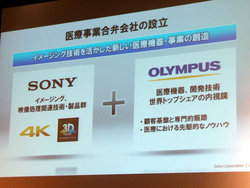 医療事業での提携では、外科イメージング事業の強化・拡大を確信。「ソニーのデジタルイメージング技術を活かし、3D、4Kというこれまでにない画像描出能力を持った製品の開発により、プラスαの新しい可能性が拡がってきた」と効果を強調した。