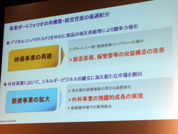 また、当初6月に予定されていた提携の結論がここまで遅れたことに対し、「多くの会社からオファーをいただき、一つ一つ精査するのに時間がかかった。また、ソニーとはかなり突っ込んだ内容の話を行った」と説明。提携先をソニーに決定した理由については「医療やデジタルカメラなど幅広い分野で、具体的な技術に支えられた提携ができると判断した」と語った。