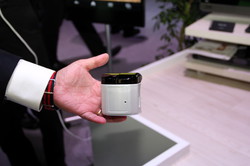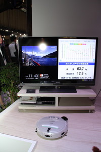 またアプライアンス関連でAV機器にも関係がある展示としては、COCOROBO向けの外付け赤外線リモコンユニットを出展。このユニットをCOCOROBOに装着することで、外出先からネットワーク経由でテレビの電源を消したり、エアコンの電源を入れたり、といった使い方が可能になる。