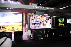 薄型テレビでは、近日中の商品化を見込む「MOTH-EYE(モスアイ)」技術を搭載した液晶テレビ“AQUOS”を展示していた。80V/70V/60V型の3サイズを参考出展しており、商品化が近いものと予想される。