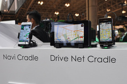 会場には新製品以外にも多数のカーエレクトロニクス製品が出展。なかでもいちばん注目を集めていたのは、やはり「ARナビゲーション」で、体験ゾーンには順番待ちの列が。そのほかスマートフォンとの連携や、EV車用のカーナビ、非接触充電システムなども展示されていた。
