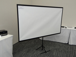 TW510Sに付属するスクリーンは折り畳み型自立式の80型ワイドスクリーン。使用時に組み立てて、使用後はコンパクトに片付けられる。