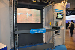 エイム電子は、11月に発売を予定している4K映像の伝送に対応したHDMIケーブルを出展していた。こちらは「AVC-LS」シリーズで、1.5m(税込105,000円)から100m(税込294,000円)まで9種類の長さをラインナップしている。伝送性能は10.2Gbps。HDMI HIGH SPEED規格に対応する。光伝送のため、外来ノイズの影響を受けずに伝送できるのが特徴とのこと。