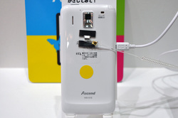 そのほか、日本での発売が未定のスマートフォンも参考出展されていた。Ascendの「D1 Quad XL」は、1.4GHz クアッドコアCPUと16コアGPUを搭載。ディスプレイは1,280×720 330ppiのスーパー有機ELディスプレイ。2,600mAhの大容量バッテリーも内蔵している。カメラは有効画素数800万で、撮像素子には裏面照射CMOSを採用しているのが特徴だ。「HW-01Eの反応を見つつ、D1 Quad XLの投入も検討したい」(同社説明員)とのこと。