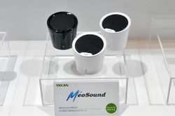 加賀ハイテックは、Siriの操作にも対応した“MeoSound”ブランドのBluetoothスピーカー「MS003」などを展示している。