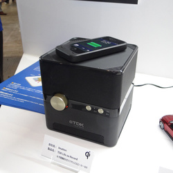 ワイヤレスパワーコンソーシアムのブースでは、同団体が策定したワイヤレス給電に関する規格「Qi」の技術的なメリットをアピール。電磁誘導方式の充電に対応する機器どうしを近接配置するだけで、ワイヤレス充電が行えるQi対応の機器は、スマートフォンやその充電機器などに商品化が進んでいる。