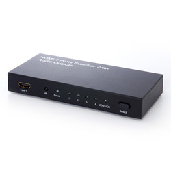 4つのHDMI入力のうち、1系統をフロントに備える。出力はHDMIを1系統のほかに、光デジタル/同軸デジタル/3.5mmステレオミニジャックを各1系統装備する。出力音声は、音響機器にあわせて2chと5.1chを切り替えられる。