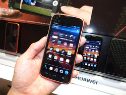 HUAWEI製のAndroid 4.0搭載スマートフォン。カラーバリエーションは側面にオレンジ色の配色を施したフレイムブラックと、グロスフィニッシュのライトニングブラックの2色。