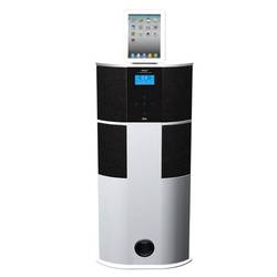 本体サイズ150W×1,000H×460Dmm、質量約16.6kgのタワー型デザインを採用したドックスピーカー。内部に3.5インチのドライブユニットを2基と、8インチのドーム型ウーファーを1基搭載する2.1ch構成。