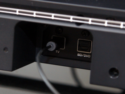 実用最大出力は110W。サウンドバー部のサイズは886W×80H×121Dmm (スタンド無し) で質量は3.1kg。内部には聴き取りやすい音質にこだわったという5.5cmのコーン型ユニットを2基を搭載している。背部にはテレビリモコンリピーターを内蔵し、本体をテレビの前に設置してテレビの受光部を隠してしまう場合でも、テレビリモコン信号を本機を介してテレビに発信することができる。テレビから本機への音声入力は、本体背面に光デジタルを2系統装備。HDMI端子は備えていない。