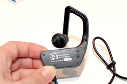 遮音性とフィット感を両立する2ポジションポストを採用したイヤーピース機構を採用。電源はリチウムポリマー充電池で、apt-X使用時で最大約5時間の連続再生が可能。充電時間は約3時間。外形寸法は26W×61H×18Dmmで、質量は約30g。