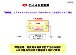 SD画質の映像をHDに変換する「超解像アップコンバート」も4K対応となった。同じく4K対応となった「ディティールクラリティプロセッサー for BD」との掛け合わせで、輝度信号と色信号を画素単位で分析/補正でき、より高精細な4K/24p映像をHDMIから出力する。なお、本機ではデジタル放送の視聴時を除き、BD/DVDのコンテンツやHDDに録画したHD放送の番組など、1080/60iで記録された映画素材を4K/24pにアップコンバートして出力することが可能だ。