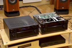 まずは2chで音楽再生を楽しむ。ここで大橋氏は、「RX-A3020は、オーディオ用とデジタル用で電源トランスを分離しています。この、電源トランス部の分離を徹底していることも音質向上のポイントですね」と説明。それを受けたヤマハの安井氏が「はい。オーディオ回路用、デジタル専用、FL用とそれぞれを独立構成の電源にしています」と解説した。