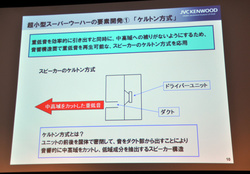 「ストリームウーファー」の開発経緯と技術要素については、JVCケンウッド ホーム&モバイル事業グループ HM技術統括部 商品設計第三部 シニアエンジニアリングスペシャリストの三浦拓二氏が説明を行った。