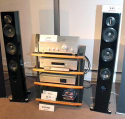 シアターだけではなく、2chオーディオコンポーネントも出展。注目の新製品プリメインアンプ「A-70」とSACDプレーヤー「PD-70」を、ネットオーディオプレーヤー「N-50」と組み合わせたシステムが用意され、試聴を行うことができる。