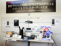 バッファローでは、NAS“Link Station mini”「LS-WSXS240L/R1」などを展示。パイオニア「N-30」、ヤマハ「CD-N500」、デノン「DNP-F109」といったネットワークオーディオプレーヤーと接続しての展示で、ネットオーディオでの同社製品の活用法を提案している。