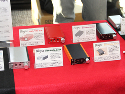 バイオスケールは、ポータブルヘッドホンアンプ“Bispa”シリーズをアピール。特に今回のポタフェスでは、e☆イヤホンオリジナルモデルとなる「BSP-PHPA-02ES」をメインにフィーチャーしている。