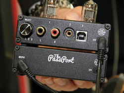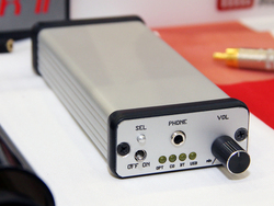 今回の出展にあわせ、ALO Audioのヘッドホンアンプ機能を搭載する真空管USB-DAC「The PanAm(パンナム)」を試験販売している。こちらは、入力系統にはアナログRCA/3.5mmステレオミニ/USBを備え、USB経由で96kHz/24bitの入力ソースに対応するモデル。ヘッドホン出力には3.5mm端子と6.3mm端子を両方備えている。内部にはウォルフソン製のDACチップを搭載。周波数特性は40Hz〜30kHz(±1dB)となる。