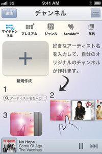 今回のバージョン1.2では、新機能として「マイチャンネル機能」を追加。選択したアーティストの曲を中心に、同じようなテイストのさまざまな楽曲を集めたチャンネルを自動で作成する。