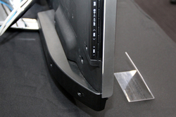 今回新たに登場した「モスアイパネル」。実際の映像を見てみると、従来のグレアパネルと比べると大幅に映り込みが少なく、画面が完全に黒バックになった際にも、前に立った自分の姿が映らない。通常の液晶パネルの最前面に「モスアイ」フィルムを貼るだけという構造のため、今後様々な展開が考えられる。