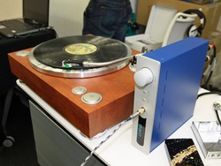 展示では、アナログプレーヤーとゼンハイザーのヘッドホンHD650を組み合わせてデモを行い、その再生能力をアピールした。
