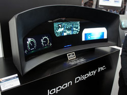 車載向けのものは、12.2インチ、1920x720画素で、黒が美しい新型IPS、ディスプレイの形を自由にするコーナーラウンドカットと曲面フォルム、さらに低消費電力化も実現したほか、タッチパネル機能も内蔵させられる。