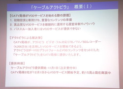 すでにCATV局2社が、このケーブルアクトビラを使ったVODサービスを12月1日に開始する予定。さらに現在、約15局と商談を進めているという。