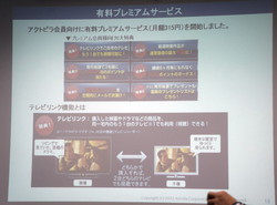 さらに、本日から本格的に開始した会員向けの有料サービス「アクトビラ有料プレミアムサービス」についても説明を行った。機能については以前のニュース記事を参照して頂きたいが、特にユーザーから要望が多かったというのが、自宅内のもう1台のアクトビラ対応機器で、購入済み商品が視聴可能になる「テレビリンク機能」。たとえばリビングで見ていた番組の続きを、寝室に置いたもう一台の対応機器で視聴することが可能になる。