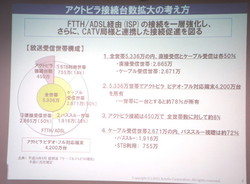 今後重視するのは、これまで掘り起こせていなかった顧客層の取り込み。FTTH/ADSL経由の接続を一層強化する一方、CATV局と連携した接続促進を図っていく考えで、「ケーブルアクトビラ」という新サービスを11月1日にスタートさせた。