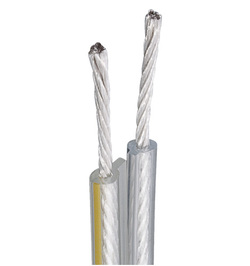 高純度銅線を採用したスタンダードなスピーカーケーブル。4mmの芯線は極細銅線を強堅に編み込み、高品位な再生能力を獲得させているという。サイド部に+/-表記を配置している。