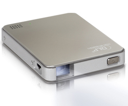本体サイズ約60W×11.1H×77Dmm(突起部除く)、質量約65g(本体のみ)の手の平サイズを実現した小型モバイルプロジェクター。AV入力端子を備えており、製品にはiPhone/iPod/iPadから映像を出力できる専用接続ケーブルを付属する。なお、この接続ケーブルはiPhone 5には対応していない。