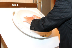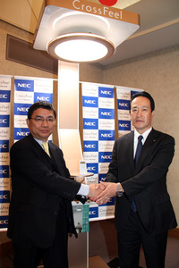 NECライティングとパイオニアは本日都内で説明会を開催。NECライティング(株)社長の山脇隆司氏と、パイオニア(株)常務執行役員の井下 源氏が登壇し、挨拶を行った。