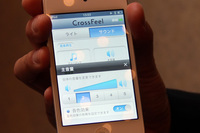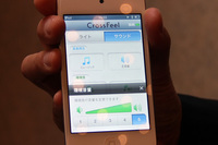 “CrossFeel”シリーズの特徴は、LED照明とBluetoothスピーカーを組み合わせた点。スマートフォンなどの音を本機にとばし、再生することができる。さらに調色機能や調音機能、環境音再生機能を備え、「おめざめ」「リラックス」などシーンに合わせた光と音に調整することも可能だ。通信方式としてBluetooth2.1 +EDRを選んだ理由は、照明器具という製品の特性上頻繁に買い替えるものではないため、スペック競争に走るのではなく、最も基本的なところをしっかり押さえることを大事にしたからだという。