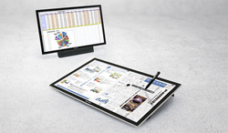 通常のディスプレイとしての使用のほか、手書き入力時に便利な「ペンライティングスタイル」や、平置きの「ホリゾンタルスタイル」などで使用が可能。紙に書くように画面に手を付いた状態でもペン入力ができる「パームキャンセル機能」や、ディスプレイを回転させることなくワンタッチで画面表示を反転できるローテート機能なども備えている。