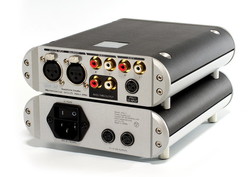 入力端子にはRCA入力2系統、XLR入力を1系統搭載。外形寸法と質量は、ヘッドホンアンプ部が147W×43H×180Dmm/0.94kg、電源部がW×43H×180Dmm/01.34kg。
