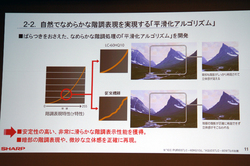 A.東芝さんやソニーさんは超解像技術を使っているが、シャープが採用しているのは、人間の光認知の過程を再現する「ICC」。全てをクッキリと際立たせるのではなく、意図してピントをずらすような映画のようなソースでも、鮮やかさを残しつつ味わいも消さない再生ができるのが特徴だ。