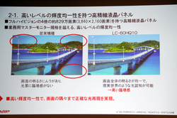 同社ではこれまで、IFAやCEATECでICC 4Kテレビをデモしてきたが、今回商品化が正式に発表された格好だ。今後同社は国内市場において、液晶テレビを「ICC PURIOS」(アイシーシー ピュリオス)と「AQUOS」の2つの商品ブランドで展開する。ICC PURIOSはよりピュアな映像を表現するテレビ、AQUOSはリビングからパーソナルルームまで、幅広いユーザーにエンターテイメントを提供するテレビとして訴求するという。
