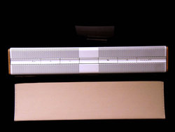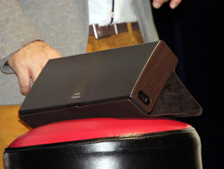 飛行機に使われるものと同等素材のアルミ合金を用いたフルメタルボディに木製パネル、手縫いのレザーカバーというデザインを採用。インテリアとしても栄えるデザインにしたのだという。なお、レザーカバーの開閉と連動して電源が自動でオン/オフする。