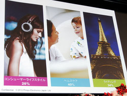 また、同社コンシューマーライフスタイル事業部 事業部長の稲原n≠ヘ、全世界で220億ユーロという同社売上のうち、ヘッドホンやオーディオを含むコンシューマ ライフスタイル分野が26%を占めていることなども紹介。ラジオ「The Little Chapel」を投入した1927年以来、「オーディオの歴史を創ってきたブランドのひとつ」だとフィリップスについて語り、「まだ日本ではオーディオブランドとしての認知度は低いかもしれないが、今後も価値がある製品を出していく。音楽を通して人々の生活を楽しくする、そういう場を提供していく会社になっていく」と述べた。