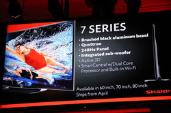 7シリーズはブラックのアルミベゼルを採用。クアトロンパネルを搭載し、アクティブ3Dにも対応。ラインナップは60/70/80インチで、4月に発売予定だ。