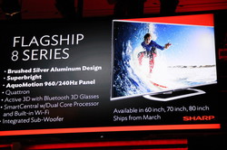 同社はプレスカンファレンスの中で、液晶テレビAQUOSの2013年新モデル、8/7/6シリーズを発表した。