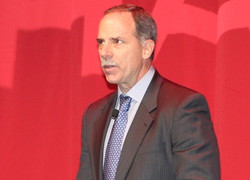 発表会には、ガラスメーカー大手の米コーニング社 コーニング ガラステクノロジーのプレジデント、ジェームス・クラッピン氏も登壇。同氏はシャープとコーニングが80年代から、約30年という長期間にわたって提携関係にあることを強調し、特にマザーガラスの大型化ではともに協力して進めてきたことを紹介した。
