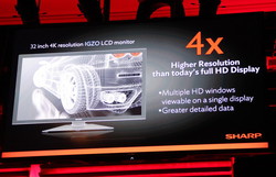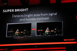 そしてもう一つ、電撃的に発表されたのが“AQUOS”ブランドの4Kテレビだ。まだサイズは決まっていないとのことだが、カンファレンスには70インチの試作機が置かれていた。もちろん4Kアップスケーラ−を内蔵する。パネル駆動速度は240Hzで、アクティブ方式の3D映像に対応。Bluetoothの3Dメガネを利用する。