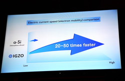 カンファレンスの中で長い時間を割いて説明されたのが「IGZO」。すでにおなじみの技術だが、プロモーションビデオを用意し、くわしく紹介した。
