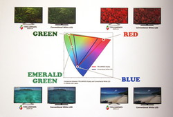 また、新たに「TRILUMINOS」ディスプレイを搭載。新世代のバックライトテクノロジーによって広い色域を実現する技術で、RGBのうちレッドとグリーンの色再現範囲が、既存のものに比べて非常に広くなる。