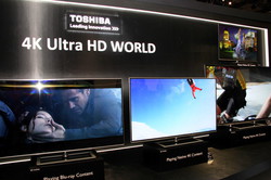 2013 Internatinal CESの東芝ブースは、UHD(Ultra HD、4Kの米国での呼称)を大々的にプッシュする構成となっている。
