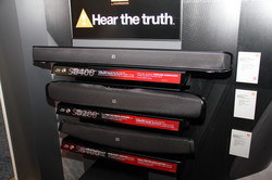 さらに、JBLのサウンドバー「SB400」「SB200」「SB100」も展示。出力はSB400とSB200が120W、SB100が60W。SB400はサブウーファーもセットになっている。価格はSB400が549.95ドル、SB200が299ドル、SB100が199ドル。